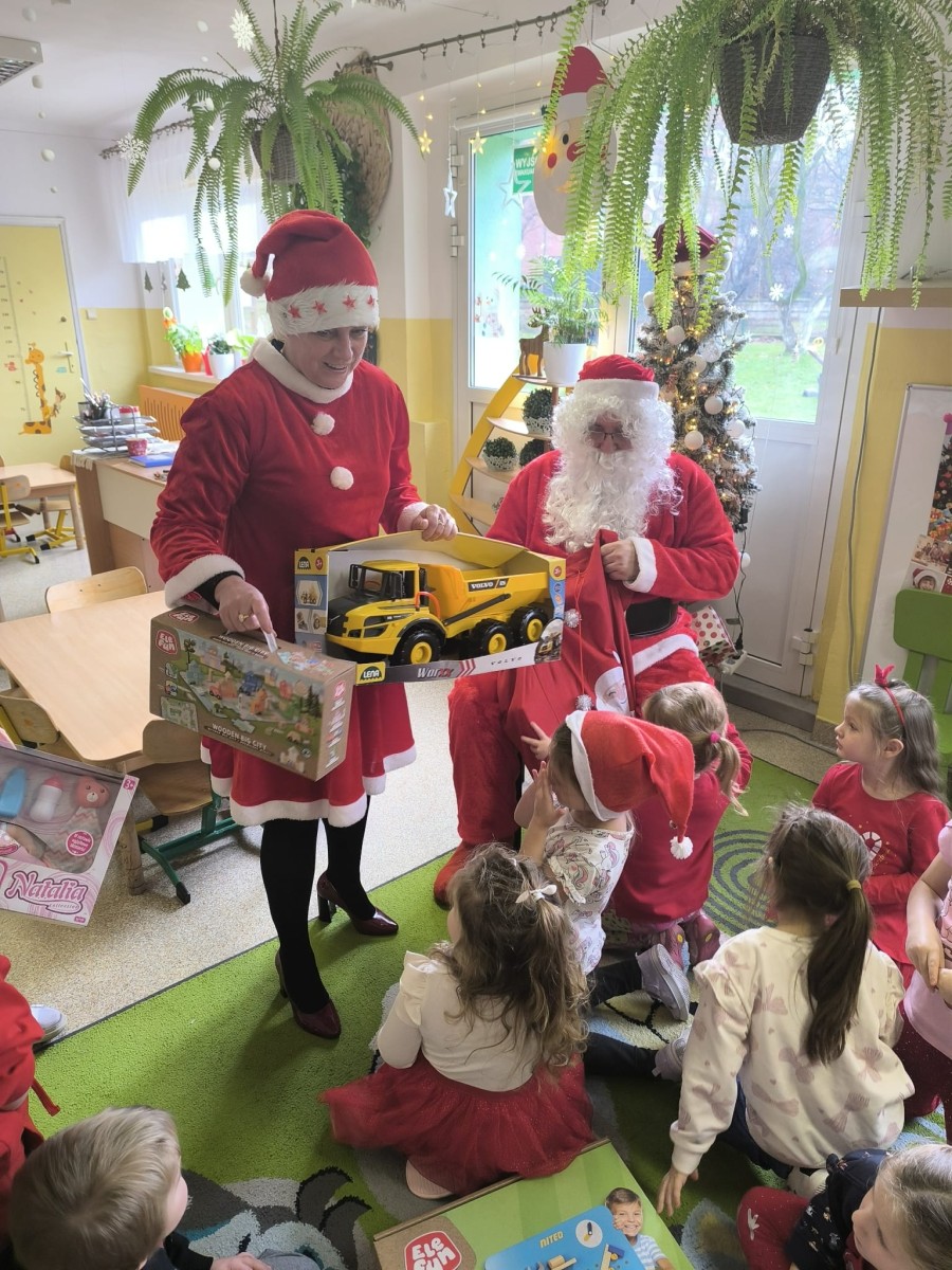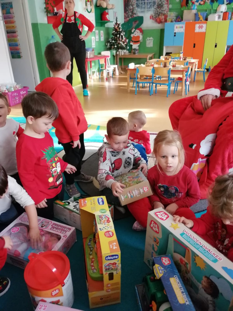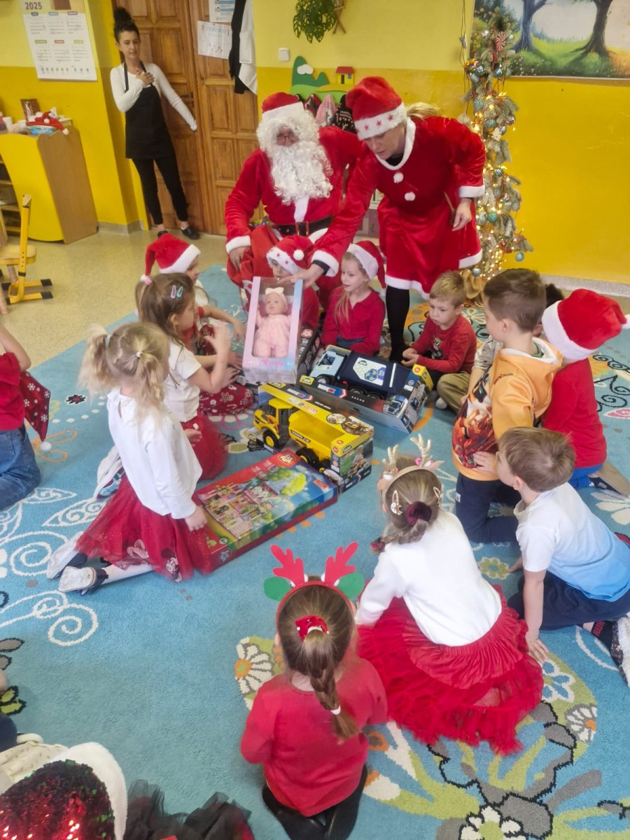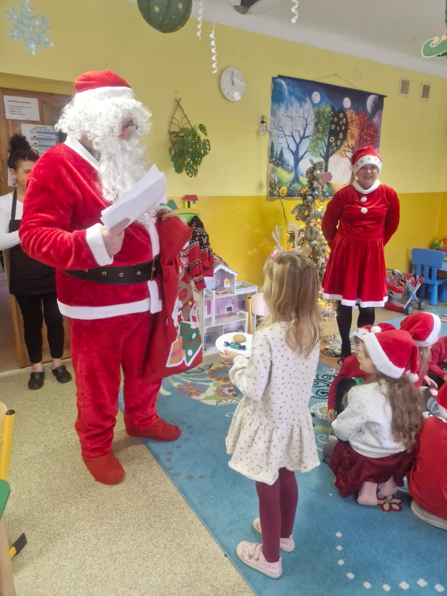 5 Grudnia 2025Dnia 5 grudnia zawitał do naszego przedszkola długo wyczekiwany przez dzieci Święty Mikołaj, który obdarował każdą grupę pięknymi prezentami. Przedszkolaki śpiewały piosenki Mikołajowi i recytowały wierszyki. Na twarzach dzieci malowała się wielka radość i przejęcie, a także nadzieja na kolejne spotkanie. Święty Mikołaju bardzo dziękujemy za odwiedziny i do zobaczenia za rok!