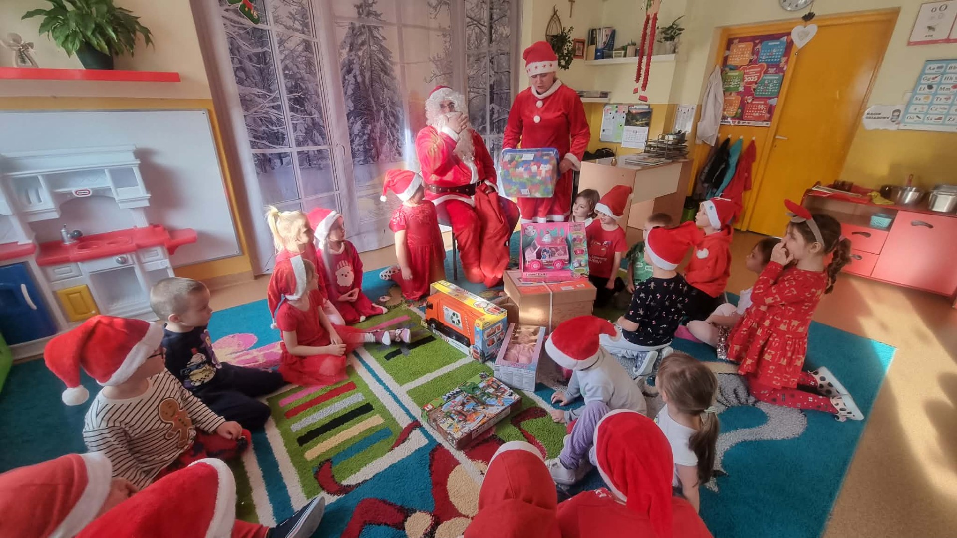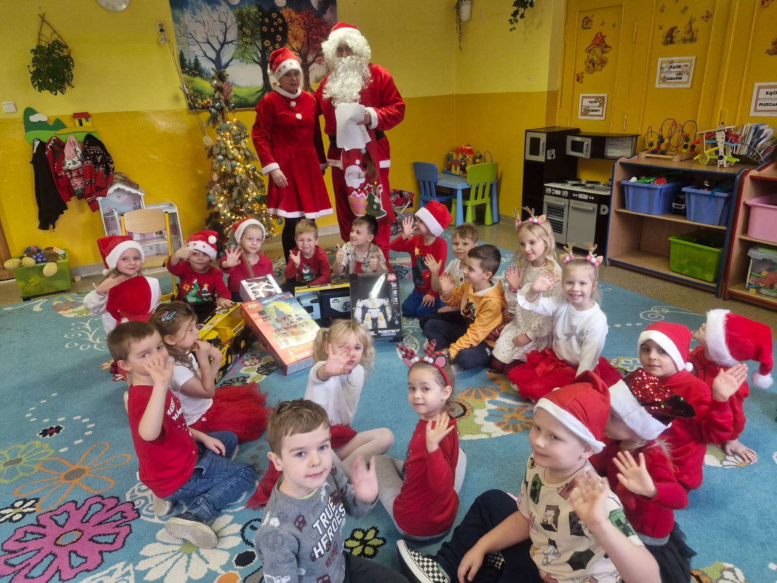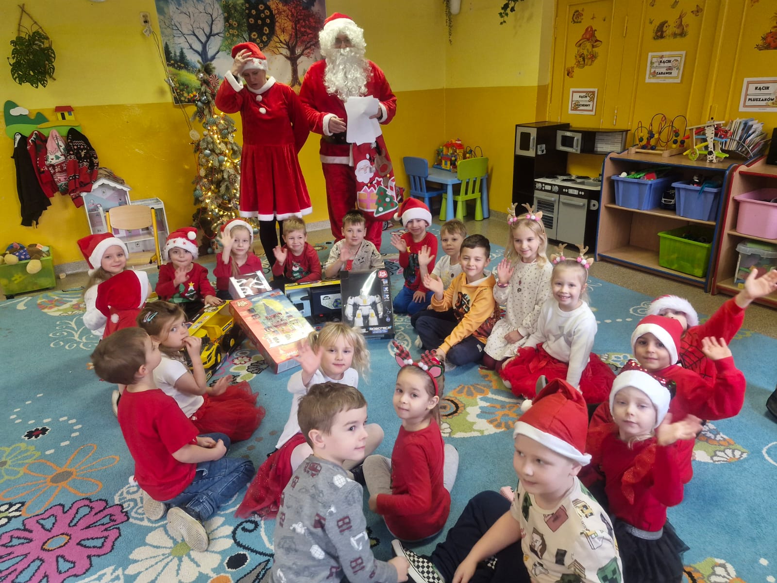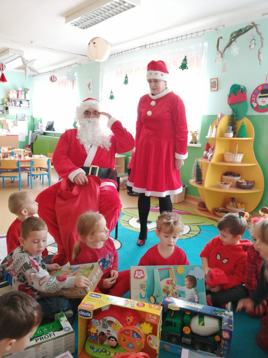 5 Grudnia 2025Dnia 5 grudnia zawitał do naszego przedszkola długo wyczekiwany przez dzieci Święty Mikołaj, który obdarował każdą grupę pięknymi prezentami. Przedszkolaki śpiewały piosenki Mikołajowi i recytowały wierszyki. Na twarzach dzieci malowała się wielka radość i przejęcie, a także nadzieja na kolejne spotkanie. Święty Mikołaju bardzo dziękujemy za odwiedziny i do zobaczenia za rok!
