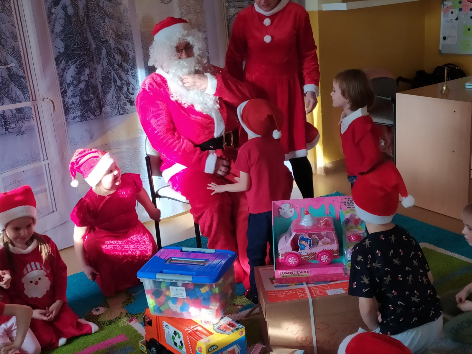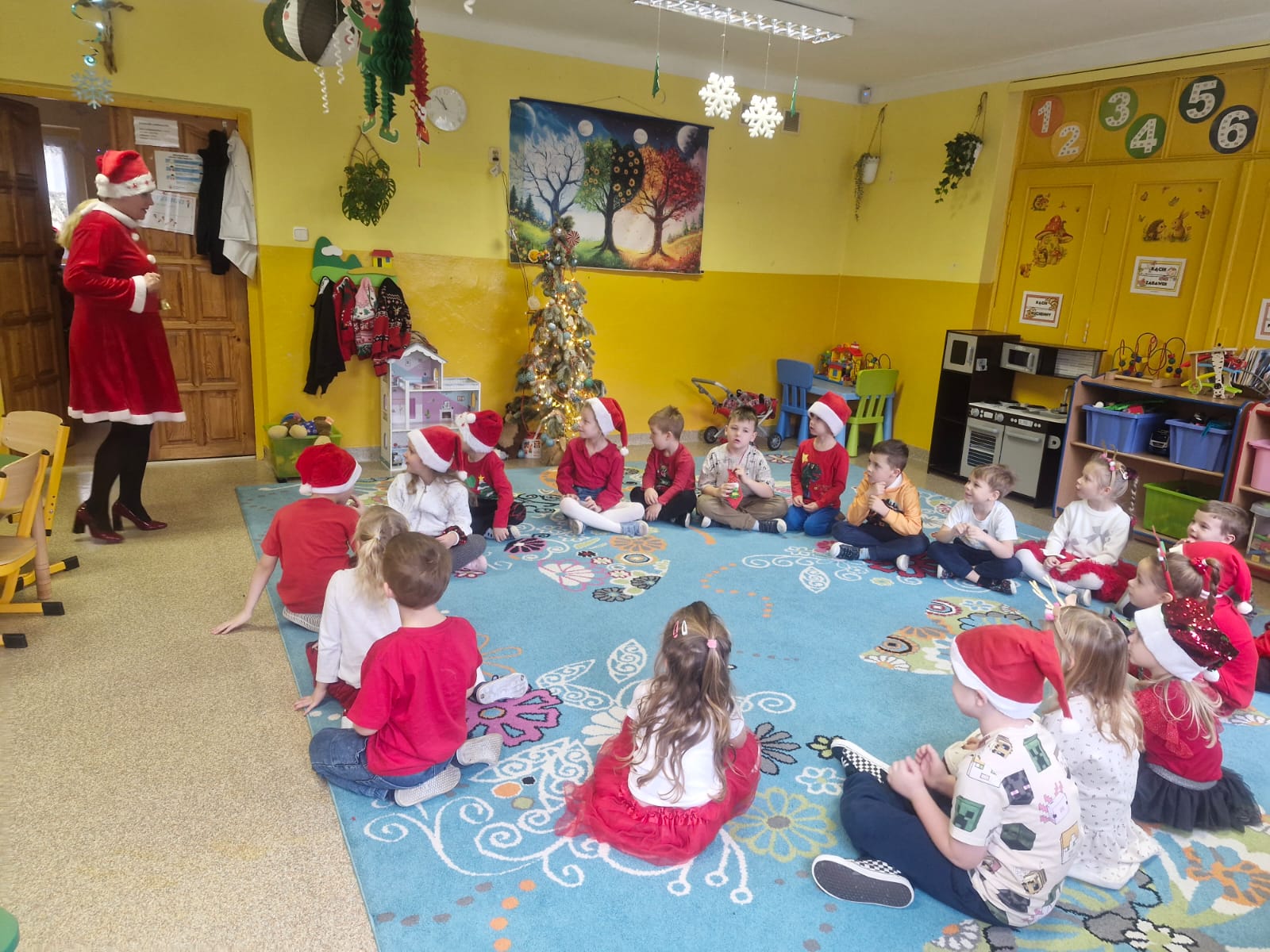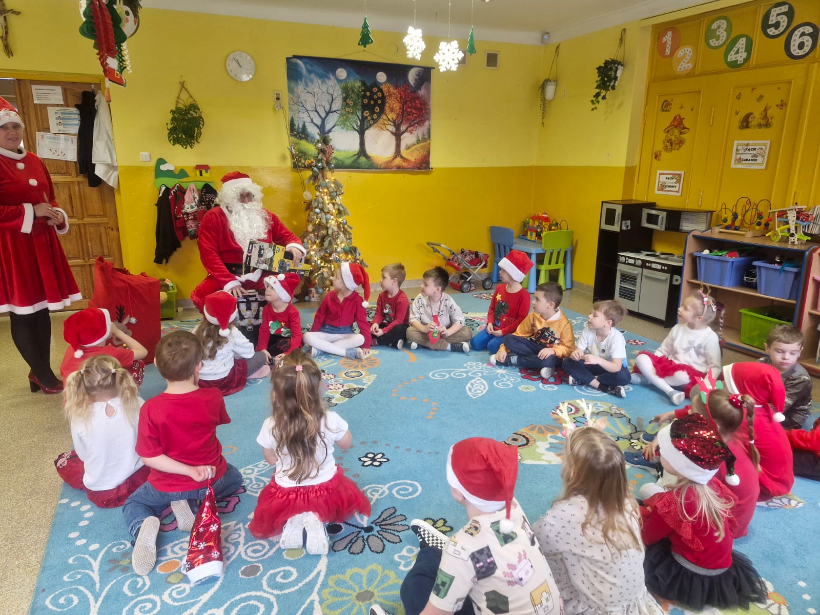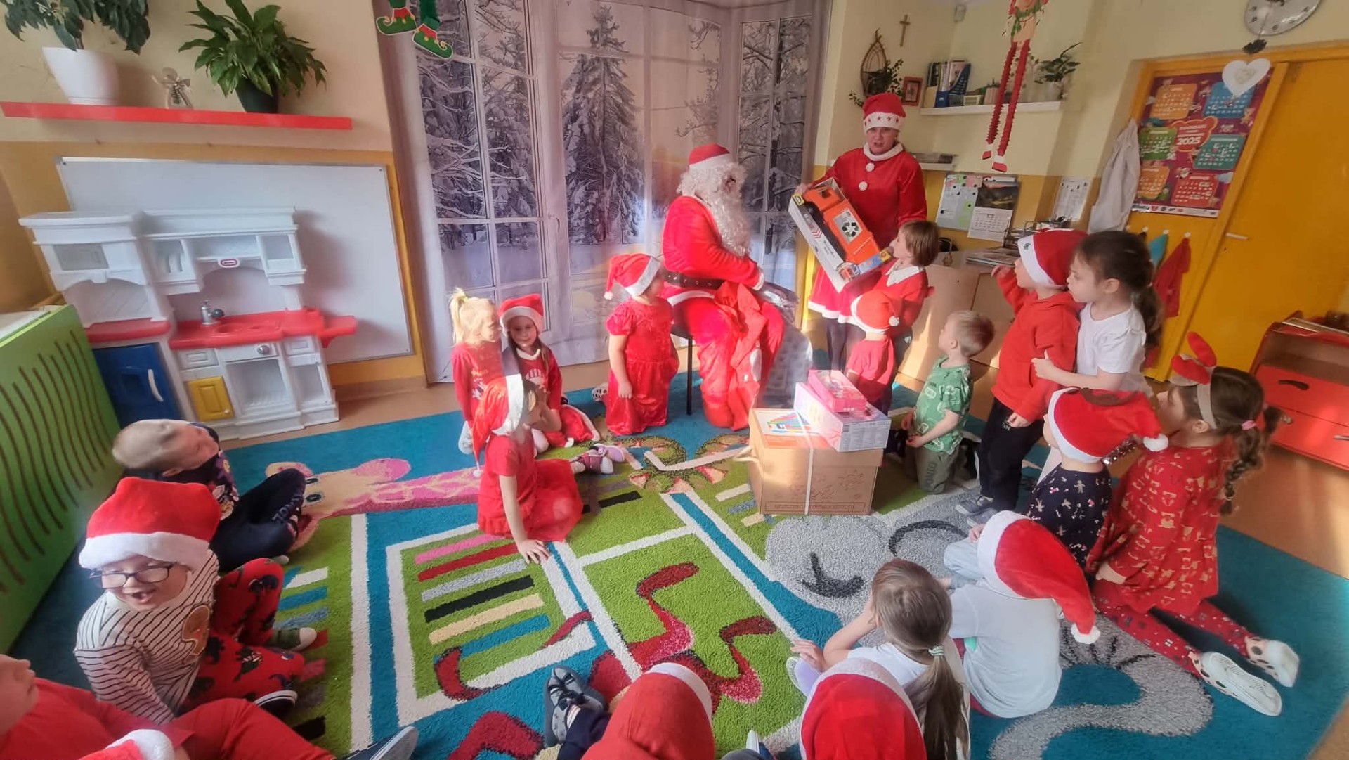 5 Grudnia 2025Dnia 5 grudnia zawitał do naszego przedszkola długo wyczekiwany przez dzieci Święty Mikołaj, który obdarował każdą grupę pięknymi prezentami. Przedszkolaki śpiewały piosenki Mikołajowi i recytowały wierszyki. Na twarzach dzieci malowała się wielka radość i przejęcie, a także nadzieja na kolejne spotkanie. Święty Mikołaju bardzo dziękujemy za odwiedziny i do zobaczenia za rok!