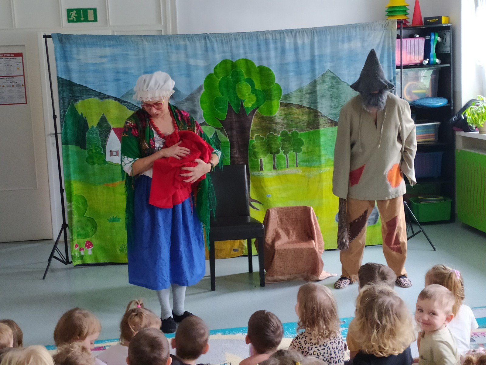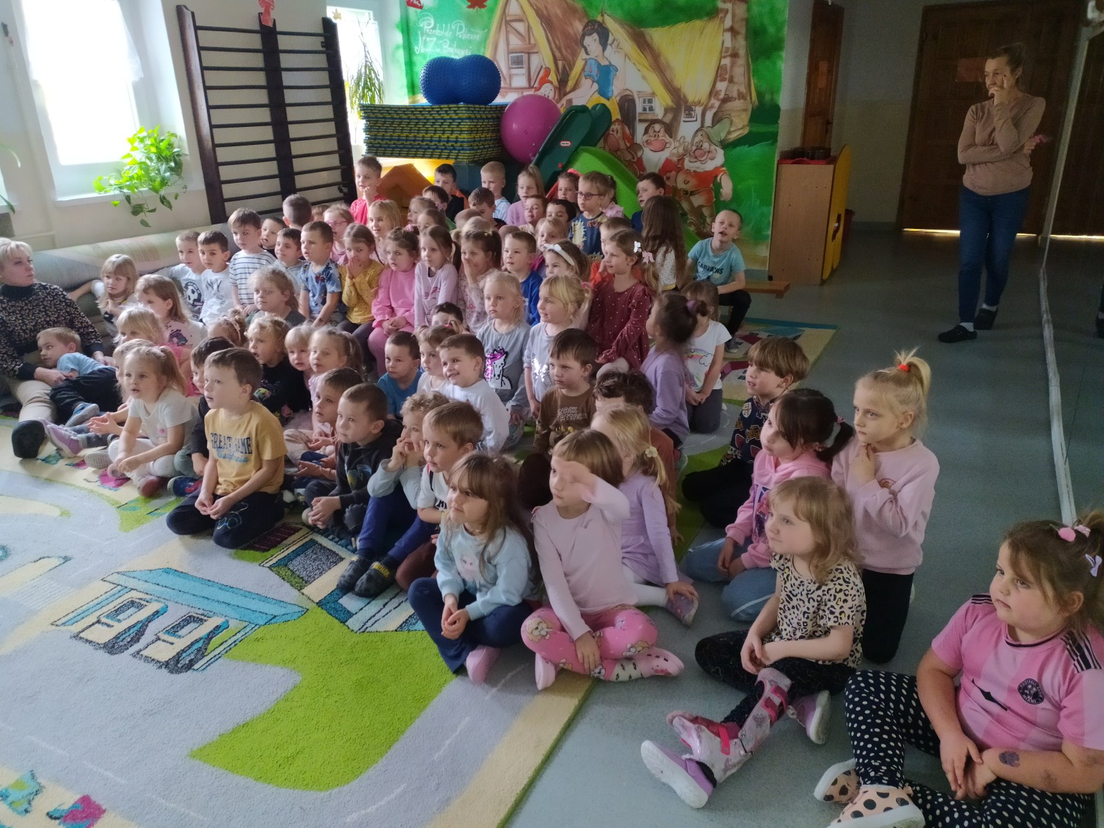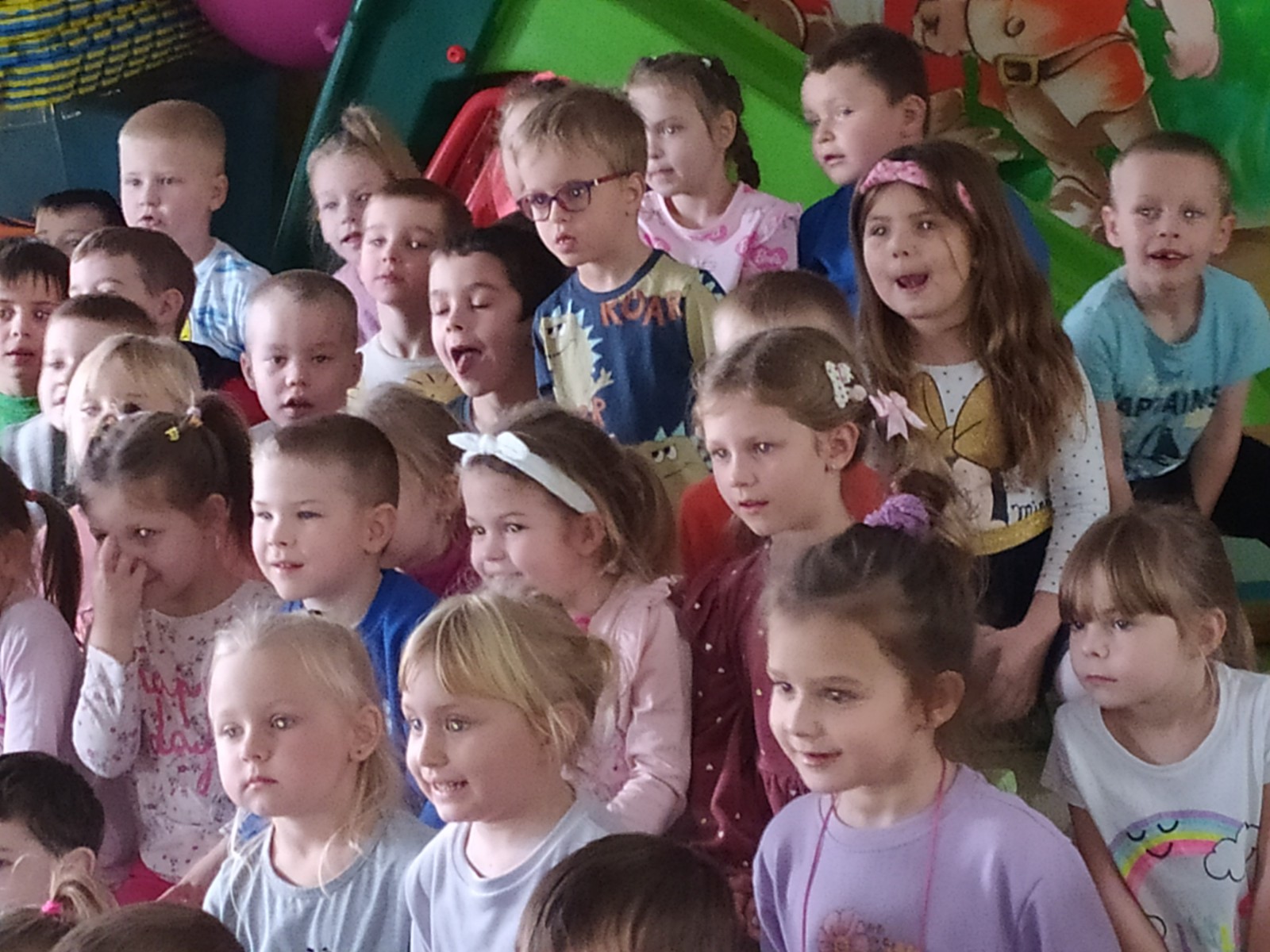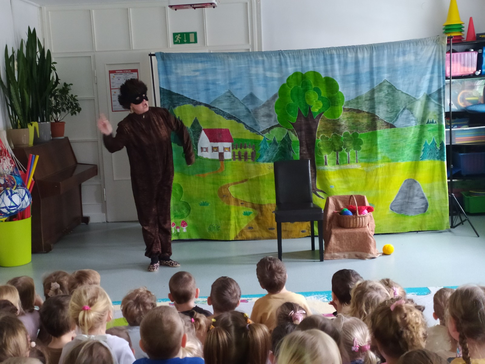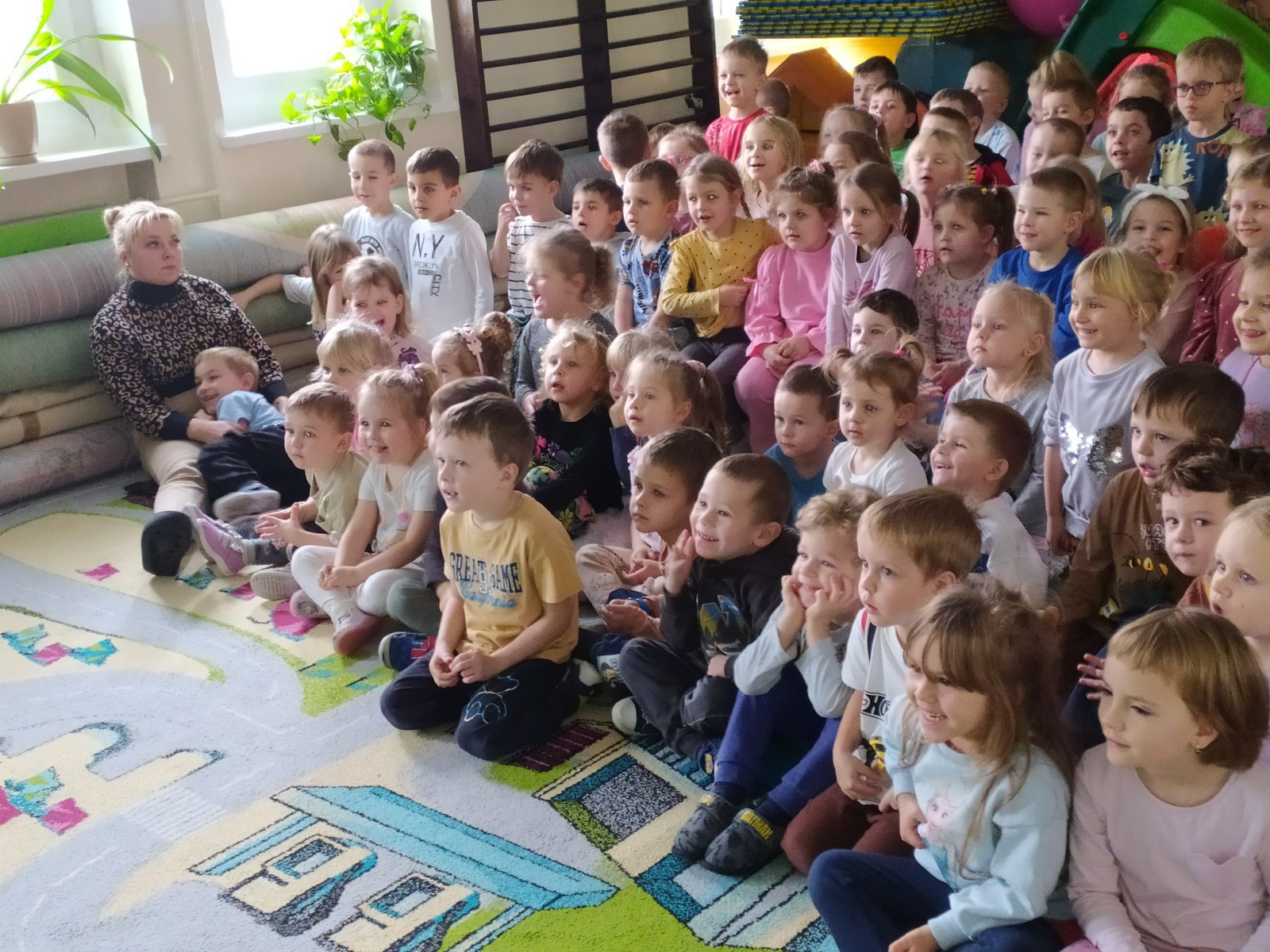 27 Listopada 2025Dnia 27 listopada gościliśmy Teatrzyk ,,Skrzat” z Krakowa z przedstawieniem „O babci, krasnalu i kolorowych kulkach”. Była to pełna humoru opowieść o dobrej i uczynnej babci Danucie, Krasnalku z lasu i nie zawsze grzecznym Kotku Psotku oraz kolorowych kulkach, z którymi zrobiło się niezłe zamieszanie. Świadczyły o tym promienne uśmiechy przedszkolaków oraz żywiołowe reakcje na pojawiających się bohaterów i wartką akcję przedstawienia. Jednakże najważniejsze jest to, że bajka uczyła dzieci tego, aby nigdy nie zabierały czegoś, co do nich nie należy.